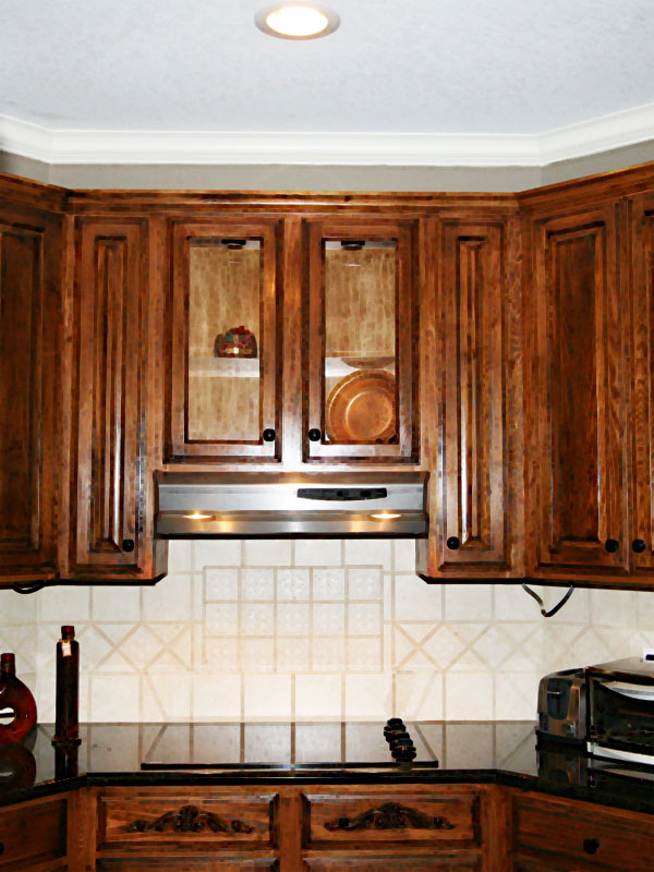 These vent hoods were installed along with new cooktops to blend with the architectural lines of the kitchen design. Both homeowners are friends in the Stone Oak neighborhood.